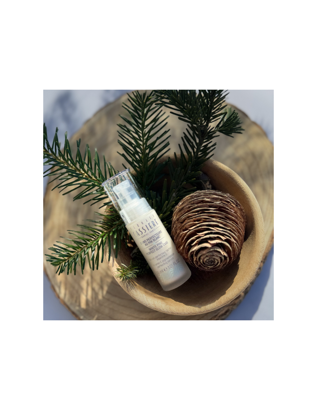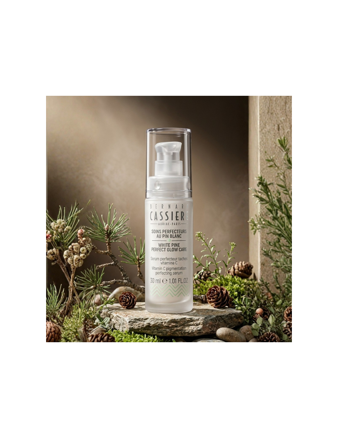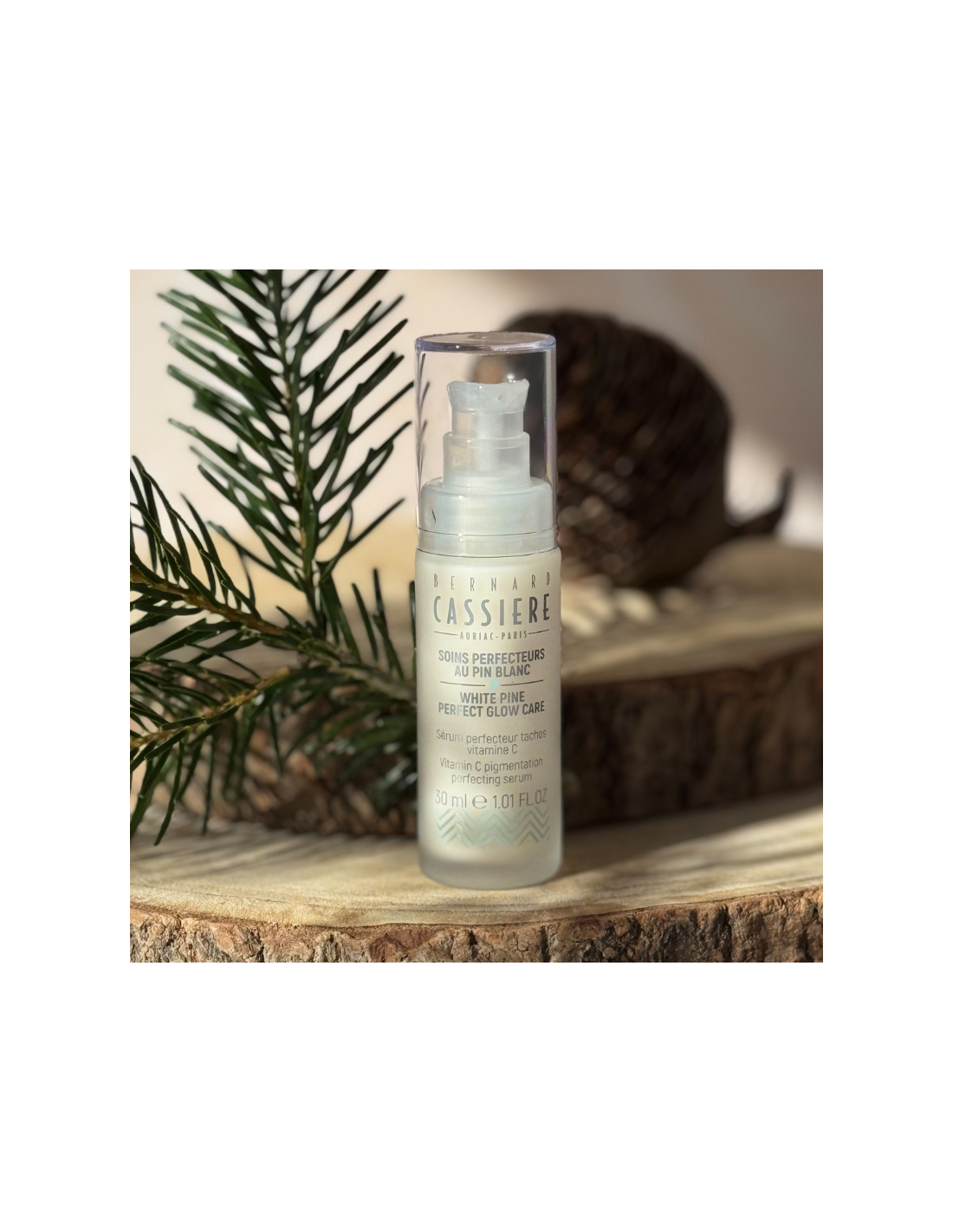 Reveal your skin's natural radiance. This bottle contains a concentrated blend of active ingredients that improve the appearance of pigmentary imperfections and even out skin tone. A vitamin C derivative and up-cycled* white pine extract at the heart of its formula help visibly reduce the size and intensity of pigmentation spot. Daily use minimizes the appearance of new blemishes. The complexion is even, glowing, and luminous.